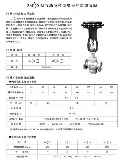 ZMA\BD型氣動(dòng)薄膜低噪音套筒調(diào)節(jié)閥